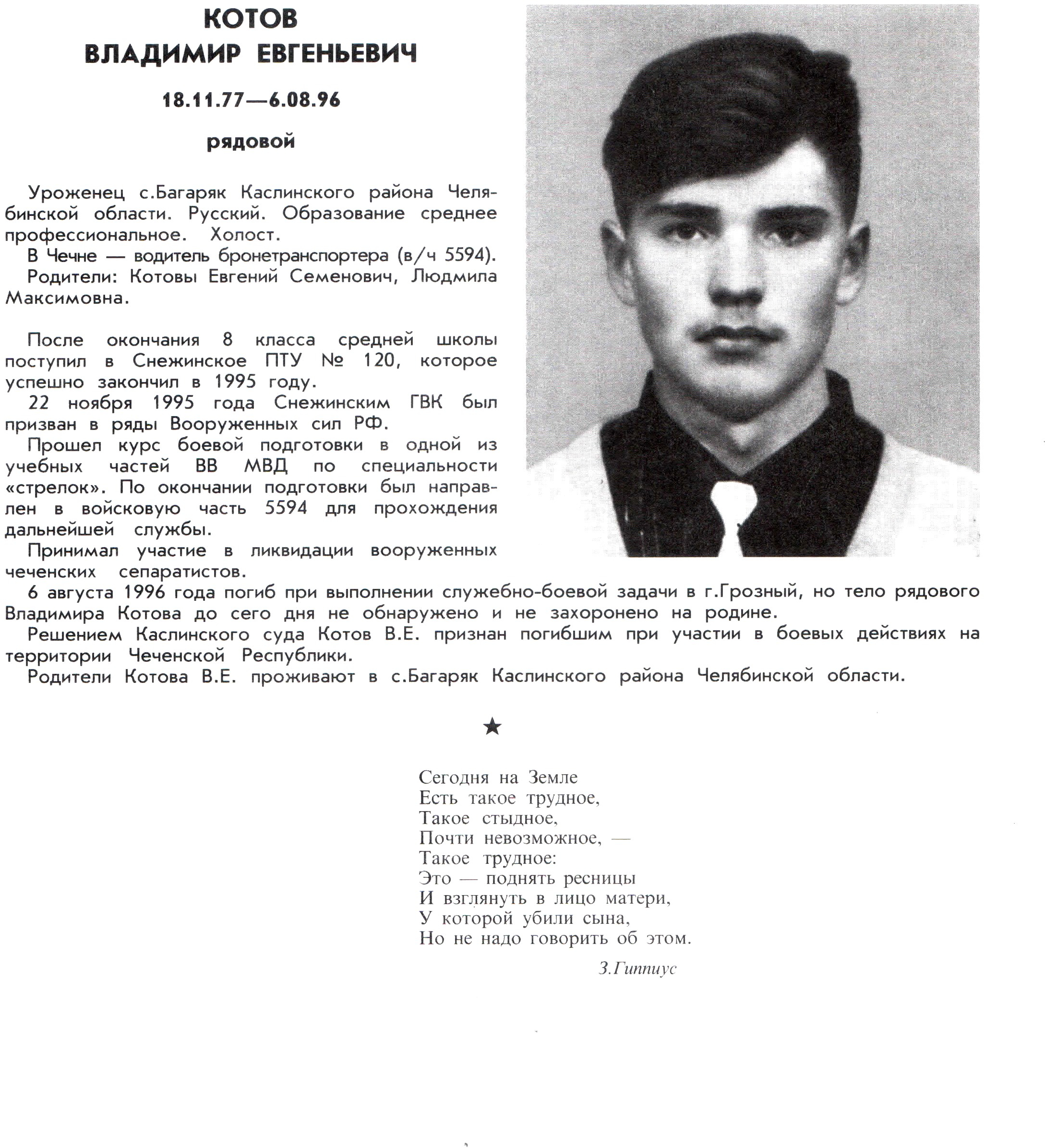 Запись на плите Котов В.Е.