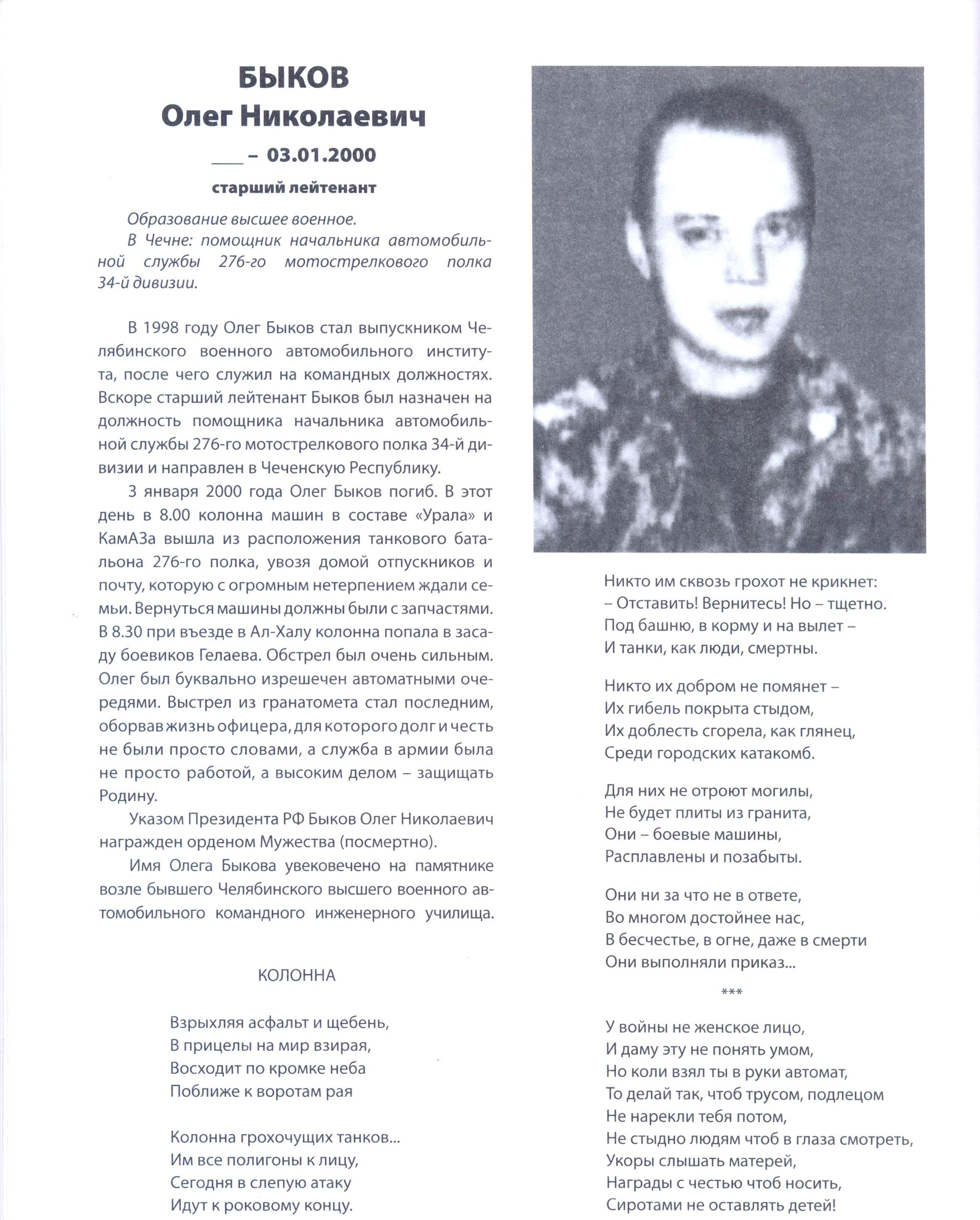Имя Олега Быкова увековечено на памятнике возле бывшего Челябинского высшего военного автомобильного командного инженерного училища