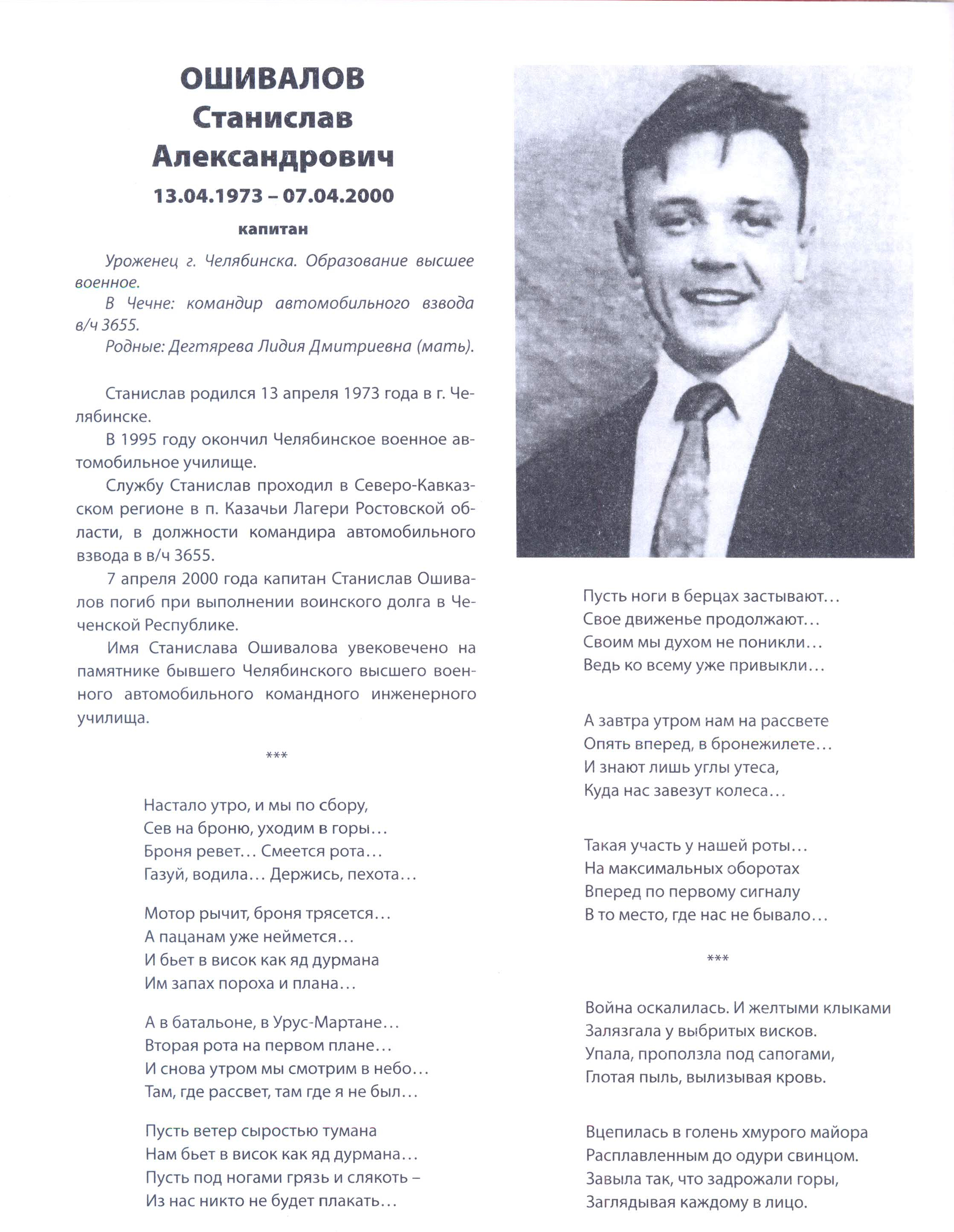 Имя Станислава Ошивалова увековечено на памятнике бывшего Челябинского высшего военного автомобильного командного инженерного училища