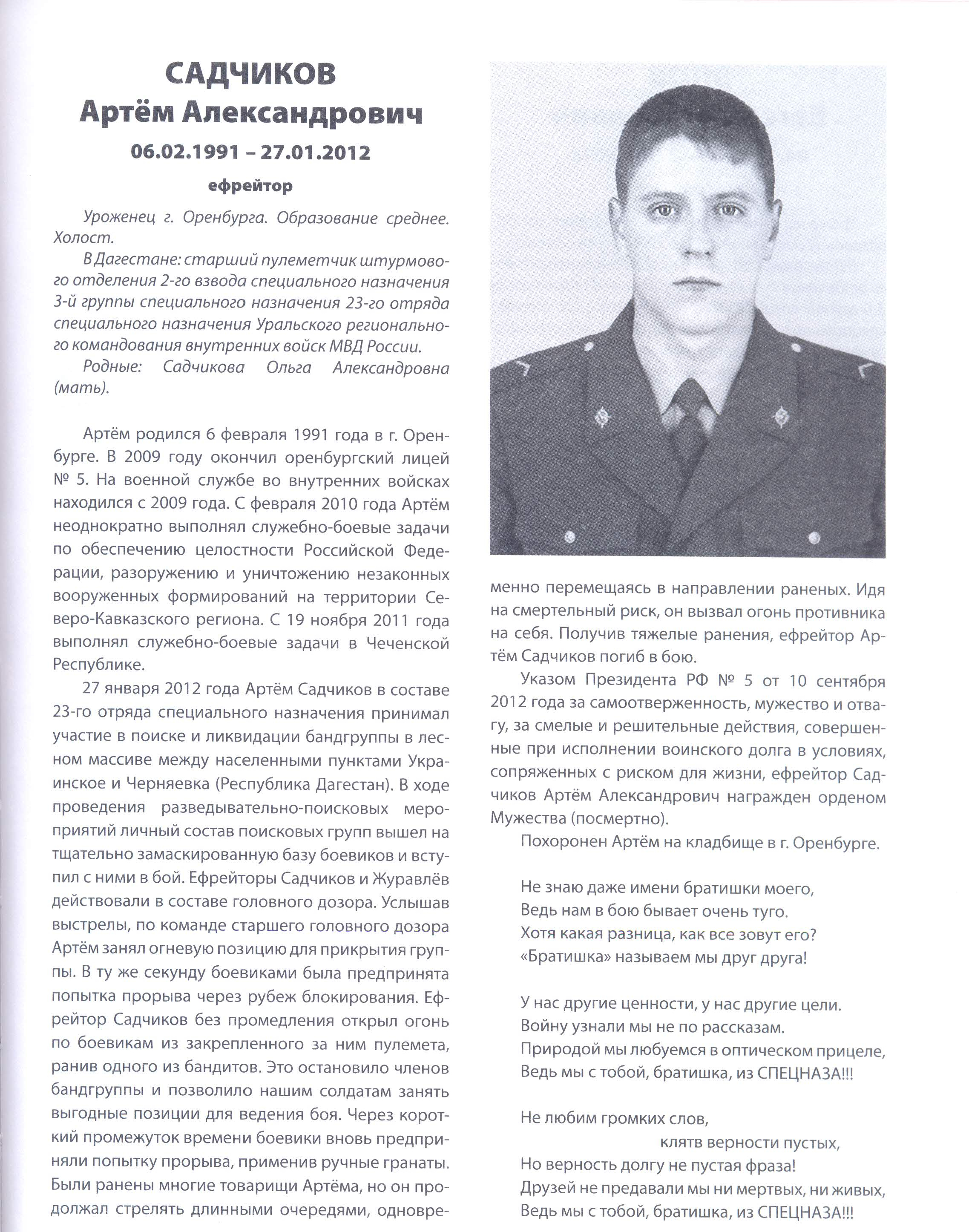 орден Мужества (посмертно)